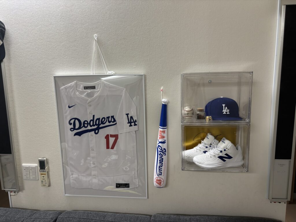 ユニフォームも額に入れて飾り、ついに“ドジャースコーナー”が完成💙